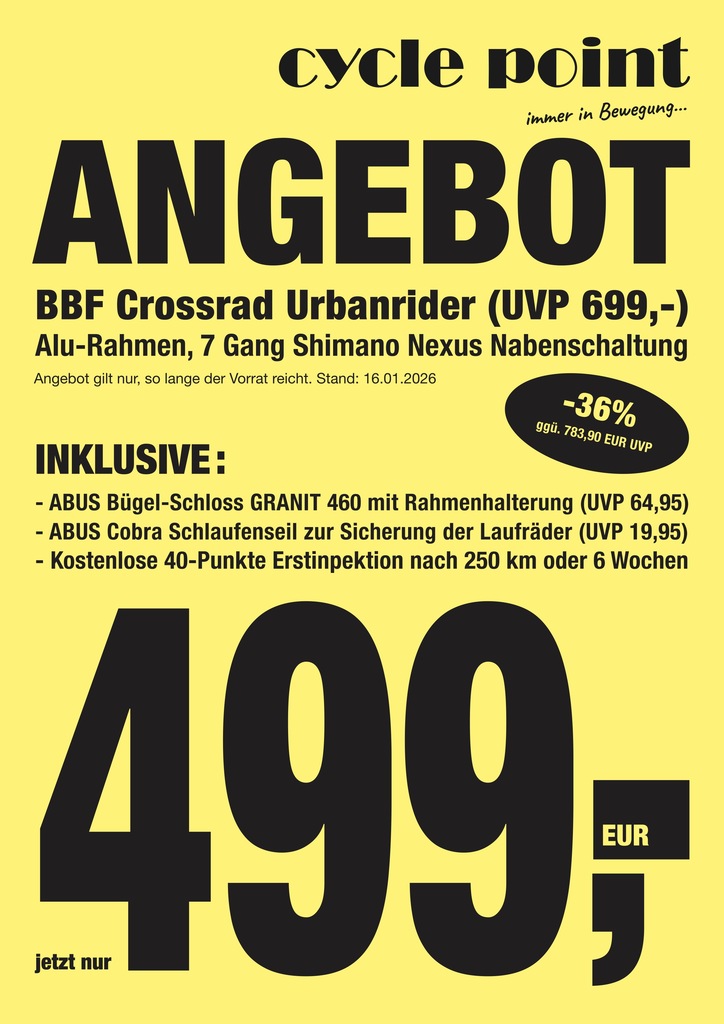 36% gespart: BBF Urbanrider 7-Gang nur 499,- EUR